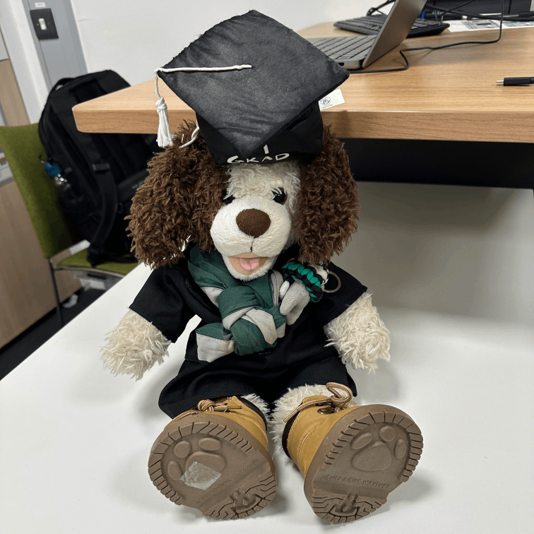 The half mascot is Bjørn the Bear (he/him) who is looked after jointly with DUSAGG, and represents Viking Rally which we hosted alongside DUSAGG in November 2021! He can be found flaunting a SSAGO coloured shield and viking helmet! Now that Viking Rally is over, he's of historical significance, so can't be stolen.