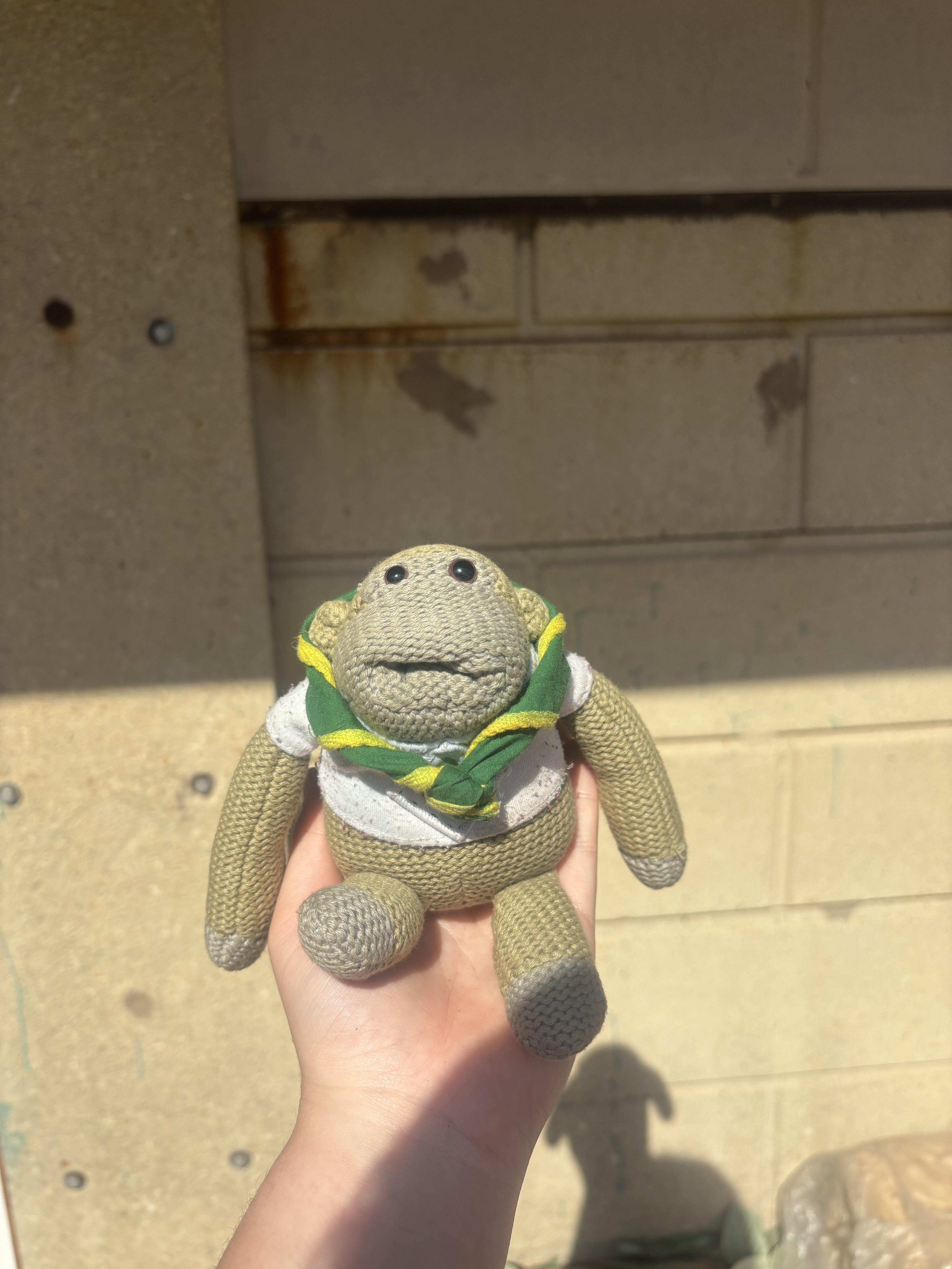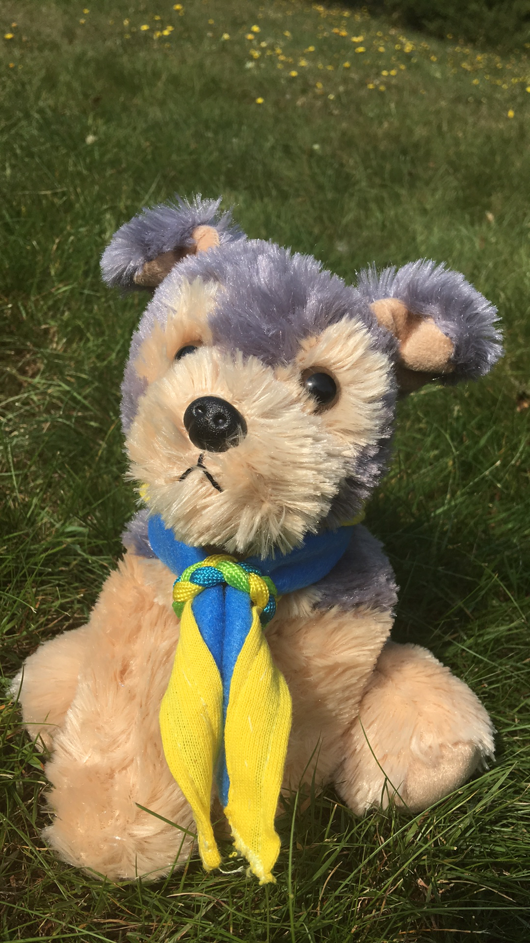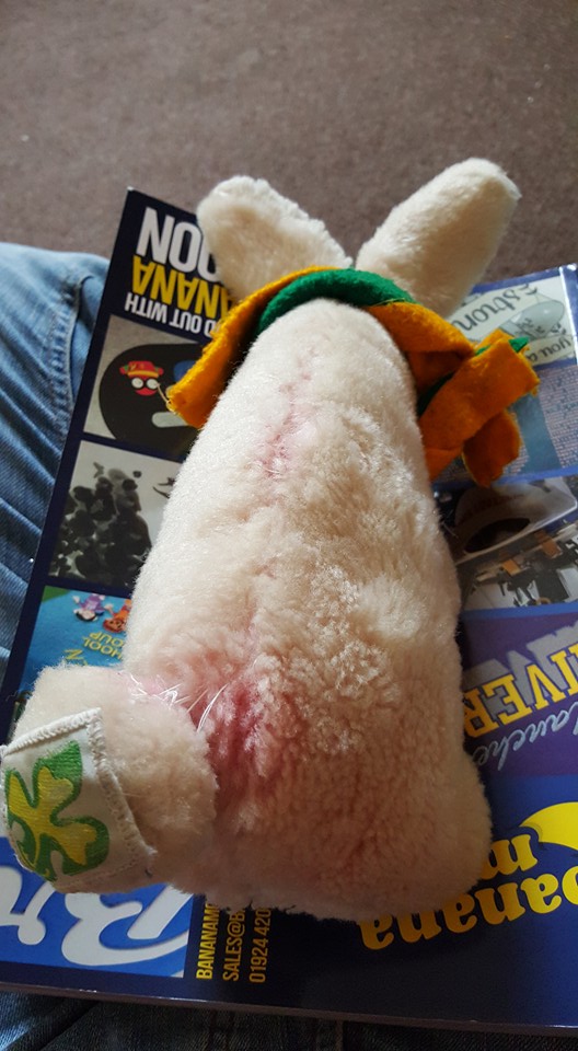 Scruffy enjoys camping, train journeys and hitching a lift on our members neckers! He also likes to wear a bell earing to warn his club if he is being stolen.