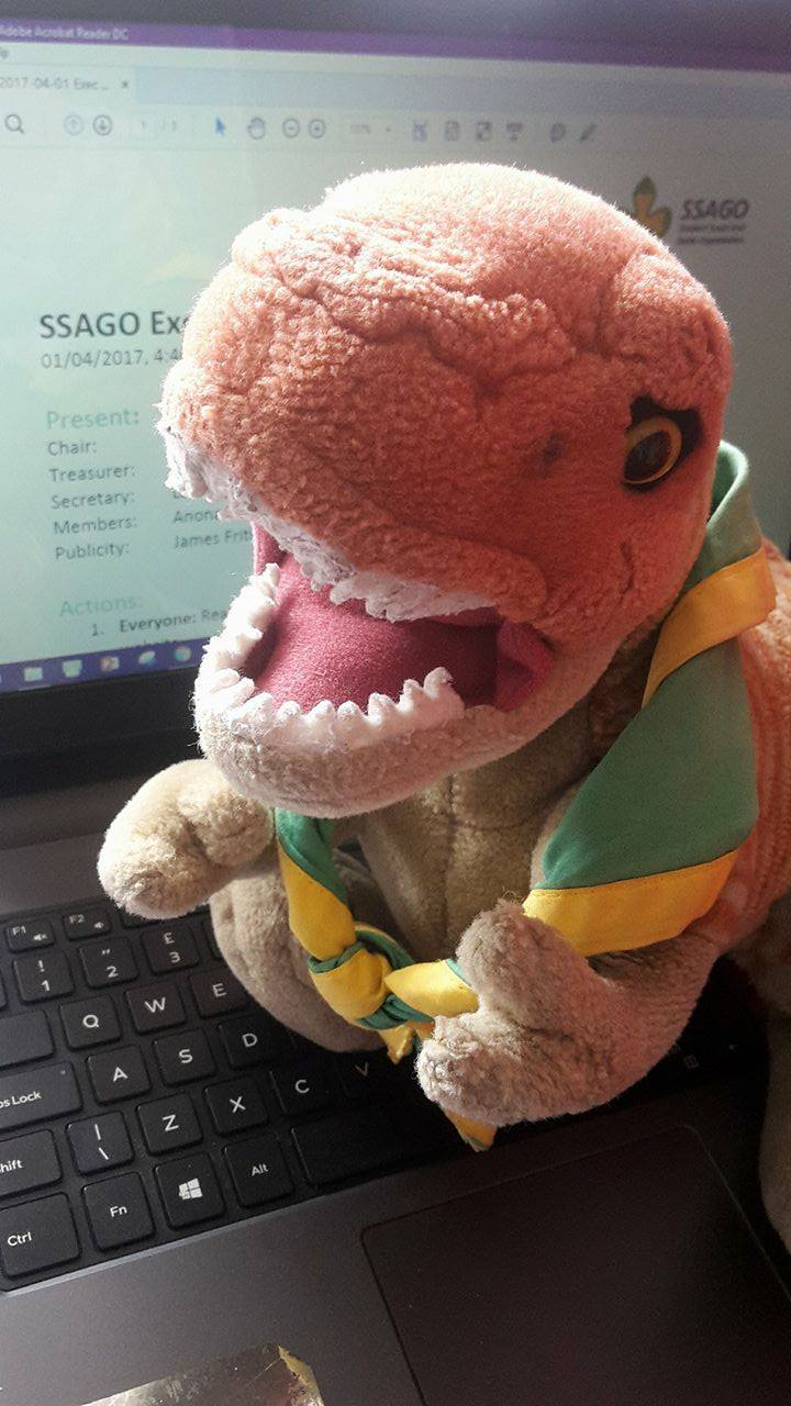 Rex Rawr! Rex O'Saurus, the Secretary’s mascot, is a t-rex; despite his short arms he loves to keep a close eye on minutes, email and policy. Beware of his sharp teeth! Secretary (Ed Knight) SSAGO Exec Non-stealable